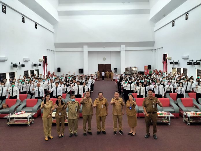 LANDAK – Sekretaris Daerah Kabupaten Landak Vinsensius membuka secara langsung dan menjadi pemateri penguatan kompetisi teknis bidang tugas (PKTBT) penyelenggaraan pelatihan dasar calon pegawai Negeri sipil lingkup pemerintah daerah Kabupaten Landak, di aula Kantor Bupati Landak, Senin, (07/11/2022).