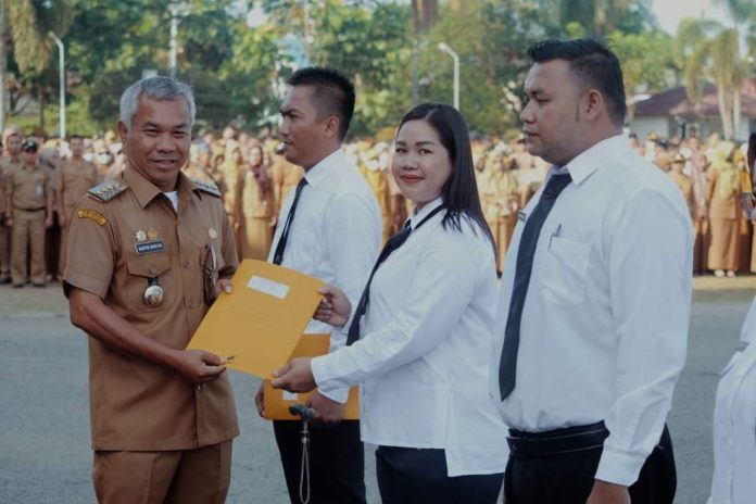 KETAPANG – Bupati Ketapang Martin menyerahkan secara langsung Surat Keputusan (SK) pengangkatan bagi 1.743 Pegawai Pemerintah Dengan Perjanjian Kerja (PPPK) yang terdiri dari 1.246 tenaga guru, 455 tenaga kesehatan dan 42 tenaga teknis yang dilaksanakan di halaman Kantor Bupati Ketapang, Senin (31/07/2023).