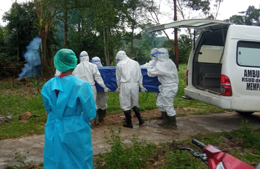 “Hari ini Sabtu kita mendapatkan informasi dari Puskesmas Menjalin yang berkerja sama dengan Rumah Sakit Rubini Mempawah bahwa pasien AY dinyatakan meninggal dunia dan akan dimakamkan secara protokol COVID-19,” ucap Bripka Riyanto yang melakukan pengamanan di pemakaman Dusun Payok Desa Lamoanak.