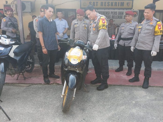 “Untuk TKP sendiri terjadi di wilayah hokum Polres Landak, untuk Tahun 2024 memang sudah ada tiga kasus curanmor yang menjadi pemicunya, pengembangan dari tiga kasus inilah Sat Reskrim bisa mengungkap 14 unit kendaraan bermotor dengan tersangka yang sudah kita amankan,” jelas Kapolres Landak AKBP I Nyoman Budi Artawan, Kamis (25/01/2024).