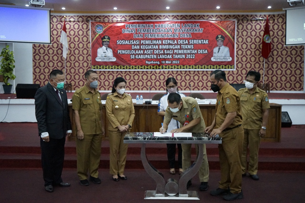 Dalam sambutannya Bupati Landak meminta kepala desa untuk aktif bertanya terkait tahapan pemilihan terlebih bagi kepala desa petahana.