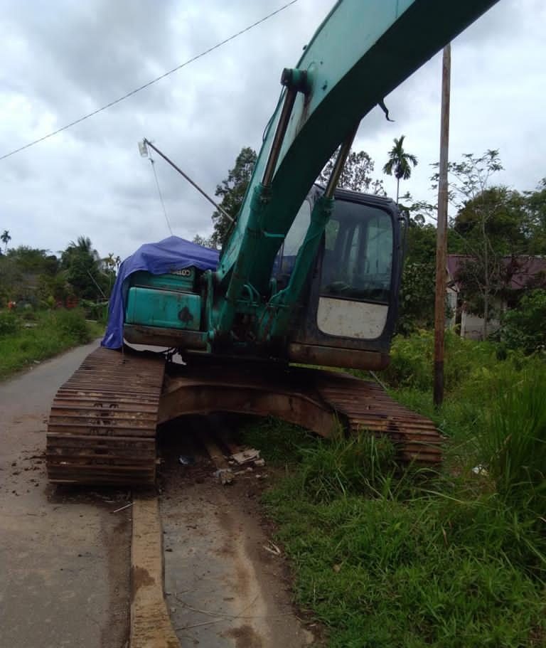 Menurut keterangan warga sekitar exavator yang dalam kondisi rusak tersebut diduga milik Salah satu dinas di Pemerintah Kabupaten Kayong Utara.