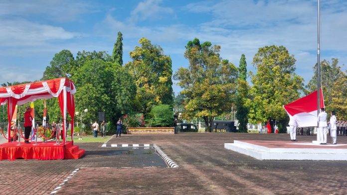 LANDAK – Pemerintah Kabupaten Landak menggelar upacara bendera dalam rangka memperingati hari ulang tahun ke-25 Tahun 2024 yang dilaksanakan di halaman Kantor Bupati Landak, Selasa (15/10/2024).