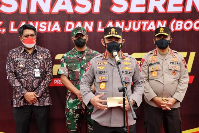 Kapolri Jenderal Listyo Sigit Prabowo meninjau pelaksanaan vaksinasi serentak di 34 provinsi di Indonesia