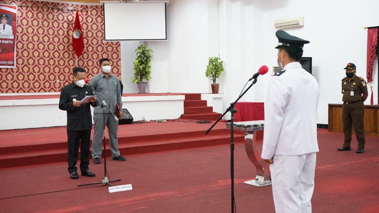 LANDAK – Wakil Bupati Landak Herculanus Heriadi melantik Kepala Desa Nyayum, Kecamatan Kuala Behe,Kabupaten Landak, pelantikan kepala desa yang dilangsungkan di aula utama Kantor Bupati Landak ini merupakan tahapan akhir dalam dari rangkaian proses pemilihan kepala desa antar waktu Desa Nyayum tahun 2021 yakni Nikodemus Ismail, Hadir dalam pelantikan Kejari Landak, Sekda Landak, Wakapolres Landak dan Camat Kuala Behe.
