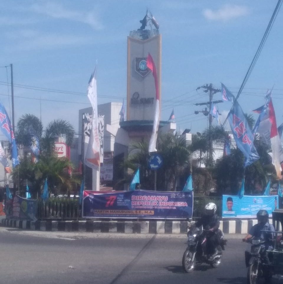SUMATRA UTARA- Warga Kotapiang, Provinsi Sumatra Utara mempertanyakan banyaknya spanduk partai politik serta umbul-umbul yang menghiasi Tugu Bundaran Simpang Tiga Kotapinang.