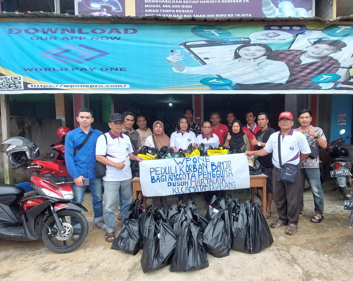 LANDAK – World Pay One (WPONE) Kabupaten Landak menyalurkan bantuan sembako bagi para member Wpone yang terdampak bencana banjir di Kecamatan Ngabang, Kabupaten Landak, pada Rabu (29/01/2025).